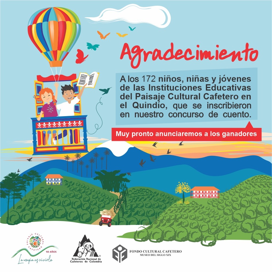 Bogotá, octubre 8 de 2021 (Prensa FNC) – Con el objetivo de promover la apropiación, cuidado y preservación del Paisaje Cultural Cafetero (PCCC) en los niños y jóvenes que habitan en los 51 municipios que lo conforman, se realizó el concurso Aventura Mágica en el Paisaje Cultural Cafetero, que contó con la participación de 978 cuentos.